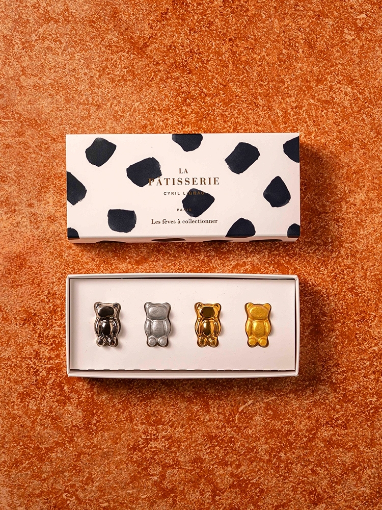 Coffret de 4 fèves « oursons » dorées et argentées.